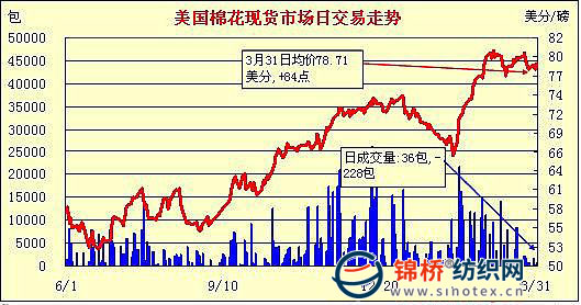 錦橋紡織網(wǎng)—資訊頻道> 棉花信息> 美棉現(xiàn)貨>正文 美國棉花現(xiàn)貨市場行情(3-31)