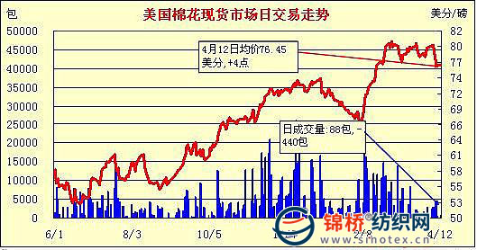 錦橋紡織網(wǎng)—資訊頻道> 棉花信息> 美棉現(xiàn)貨>正文 美國棉花現(xiàn)貨市場行情(4-12)