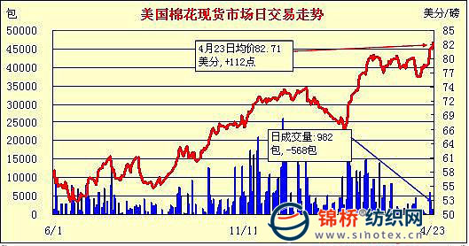 錦橋紡織網(wǎng)—資訊頻道> 棉花信息> 美棉現(xiàn)貨>正文 美國棉花現(xiàn)貨市場行情(4-23)