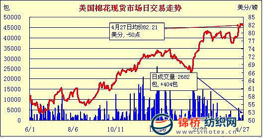 錦橋紡織網(wǎng)—資訊頻道> 棉花信息> 美棉現(xiàn)貨>正文 美國棉花現(xiàn)貨市場行情(4-27)