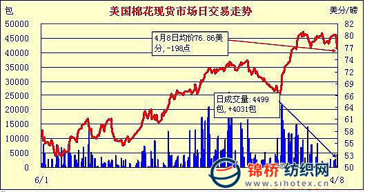 錦橋紡織網(wǎng)—資訊頻道> 棉花信息> 美棉現(xiàn)貨>正文 美國棉花現(xiàn)貨市場行情(4-8)