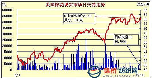 錦橋紡織網(wǎng)—資訊頻道> 棉花信息> 美棉現(xiàn)貨>正文 美國棉花現(xiàn)貨市場(chǎng)行情(5-20)