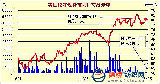 錦橋紡織網(wǎng)—資訊頻道> 棉花信息> 美棉現(xiàn)貨>正文 美國棉花現(xiàn)貨市場行情(5-25)