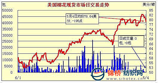 錦橋紡織網—資訊頻道> 棉花信息> 美棉現(xiàn)貨>正文 美國棉花現(xiàn)貨市場行情(5-4)
