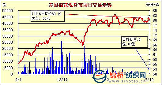 錦橋紡織網(wǎng)—資訊頻道> 棉花信息> 美棉現(xiàn)貨>正文 美國棉花現(xiàn)貨市場行情(7-19)