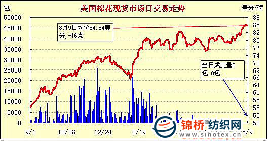 錦橋紡織網(wǎng)—資訊頻道> 棉花信息> 美棉現(xiàn)貨>正文 美國棉花現(xiàn)貨市場行情(10-8-9)