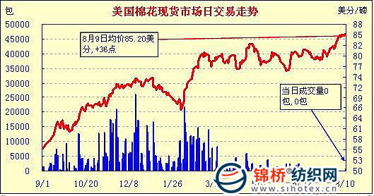 錦橋紡織網(wǎng)—資訊頻道> 棉花信息> 美棉現(xiàn)貨>正文 美國棉花現(xiàn)貨市場行情(10-8-10)