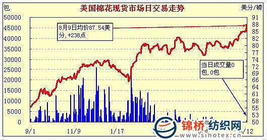 錦橋紡織網(wǎng)—資訊頻道> 棉花信息> 美棉現(xiàn)貨>正文 美國棉花現(xiàn)貨市場(chǎng)行情(10-8-12)
