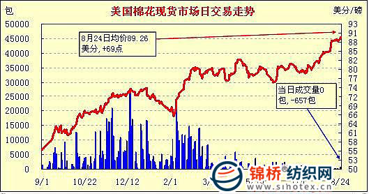 錦橋紡織網(wǎng)—資訊頻道> 棉花信息> 美棉現(xiàn)貨>正文 美國棉花現(xiàn)貨市場行情(10-8-24)