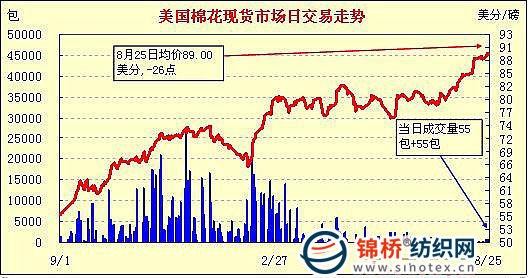 錦橋紡織網(wǎng)—資訊頻道> 棉花信息> 美棉現(xiàn)貨>正文 美國棉花現(xiàn)貨市場行情(10-8-25)