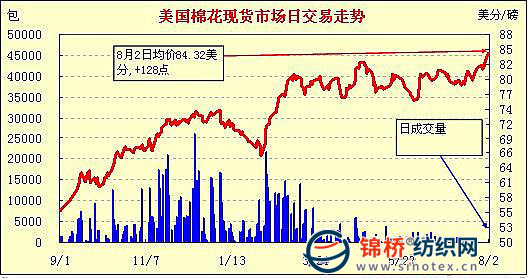 錦橋紡織網(wǎng)—資訊頻道> 棉花信息> 美棉現(xiàn)貨>正文 美國棉花現(xiàn)貨市場行情(10-8-2)