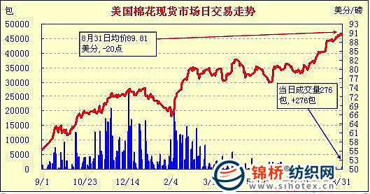 錦橋紡織網(wǎng)—資訊頻道> 棉花信息> 美棉現(xiàn)貨>正文 美國棉花現(xiàn)貨市場行情(10-8-31)