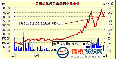 錦橋紡織網(wǎng)—資訊頻道> 棉花信息> 美棉現(xiàn)貨>正文 美國棉花現(xiàn)貨市場行情(11-1-3)
