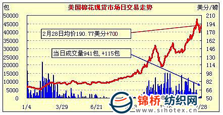 錦橋紡織網(wǎng)—資訊頻道> 棉花信息> 美棉現(xiàn)貨>正文 美國棉花現(xiàn)貨市場行情(11-2-28)