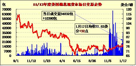 美國棉花現(xiàn)貨市場行情(13-1-17)