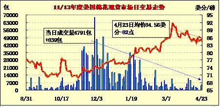 美國棉花現(xiàn)貨市場行情(13-4-23)