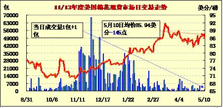 美國(guó)棉花現(xiàn)貨市場(chǎng)行情(13-5-10)