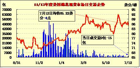 美國棉花現(xiàn)貨市場行情(13-7-12)