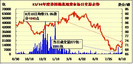 美國(guó)棉花現(xiàn)貨市場(chǎng)行情(09-10)