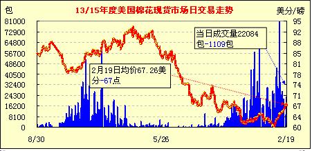 錦橋紡織網(wǎng)—資訊頻道> 棉花信息> 美棉現(xiàn)貨>正文 美國棉花現(xiàn)貨市場行情(02-19)