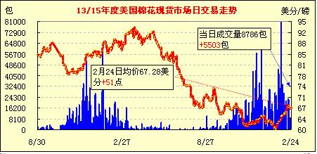 錦橋紡織網(wǎng)—資訊頻道> 棉花信息> 美棉現(xiàn)貨>正文 美國棉花現(xiàn)貨市場行情(02-24)