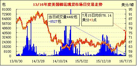 美國棉花現(xiàn)貨市場行情(07-15)