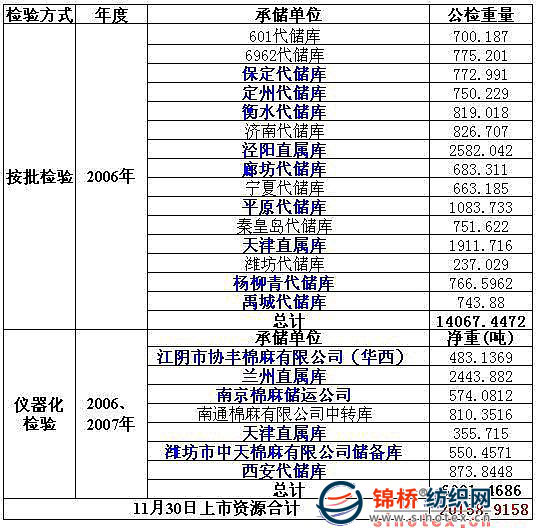 錦橋紡織網(wǎng)—資訊頻道> 棉花信息> 棉花動(dòng)態(tài)>正文 11月30日拋儲(chǔ)預(yù)告:計(jì)劃拋儲(chǔ)儲(chǔ)備棉20159噸