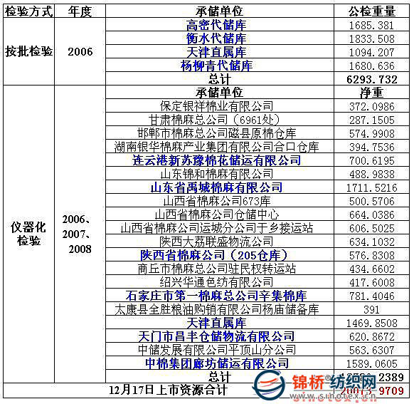 錦橋紡織網(wǎng)—資訊頻道> 棉花信息> 棉花動態(tài)>正文 12月17日拋儲預(yù)告:計劃拋儲儲備棉20074噸
