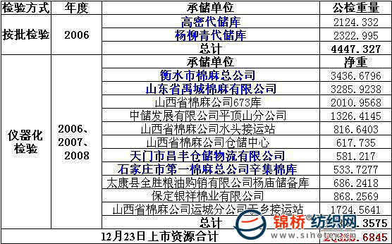 錦橋紡織網(wǎng)—資訊頻道> 棉花信息> 棉花動態(tài)>正文 12月23日拋儲預告:計劃拋儲儲備棉20336噸