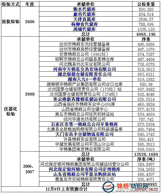 錦橋紡織網(wǎng)—資訊頻道> 棉花信息> 棉花動(dòng)態(tài)>正文 12月9日拋儲(chǔ)預(yù)告:計(jì)劃拋儲(chǔ)儲(chǔ)備棉20099噸