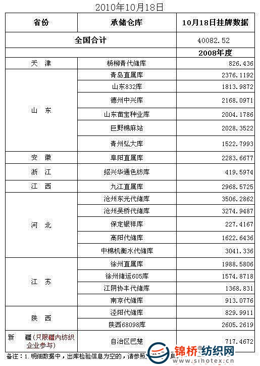 錦橋紡織網(wǎng)—資訊頻道> 棉花信息> 棉花動(dòng)態(tài)>正文 10月18日儲(chǔ)備棉投放預(yù)告:計(jì)劃投放40082.52噸