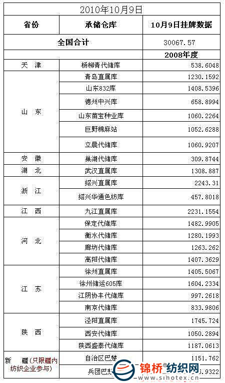 10月9日儲(chǔ)備棉投放預(yù)告:計(jì)劃投放30067.57噸