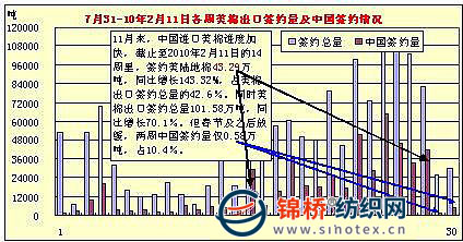 本年度陸地棉裝運(yùn)至中國(26308噸)、土耳其(10523噸)、墨西哥(7666噸)、泰國(3039噸)、中國臺灣(2903噸)。 本年度皮馬棉簽約至中國印度(1610噸)、中國(975噸)、泰國(295噸)。 本年度皮馬棉裝運(yùn)至中國(295噸)、韓國(249噸)、巴基斯坦(136噸)、德國(91噸)。 下年度陸地棉簽約至墨西哥(4196噸)、韓國(1792噸)、泰國(1497噸)。 春節(jié)及之后,因節(jié)假及棉價(jià)大幅上行波動影響,中國簽約量明顯下降,從2月12-25日的兩周里,中國簽約不足萬噸即0.58萬噸,簽約水平較前下降90%左右,占美棉出口簽約總量的比重下降3.2%,而此前為42.6%。 |