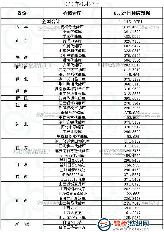 << 8月27日儲(chǔ)備棉新疆庫點(diǎn)首推出 成交價(jià)格小幅續(xù)跌關(guān)于在新疆區(qū)內(nèi)投放國家儲(chǔ)備棉有關(guān)要求的公告(2010年第6號) >>