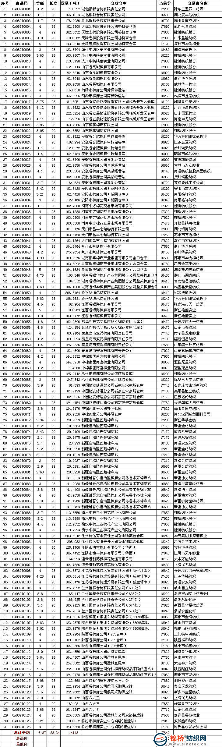 8月27日儲(chǔ)備棉成交明細(xì)表