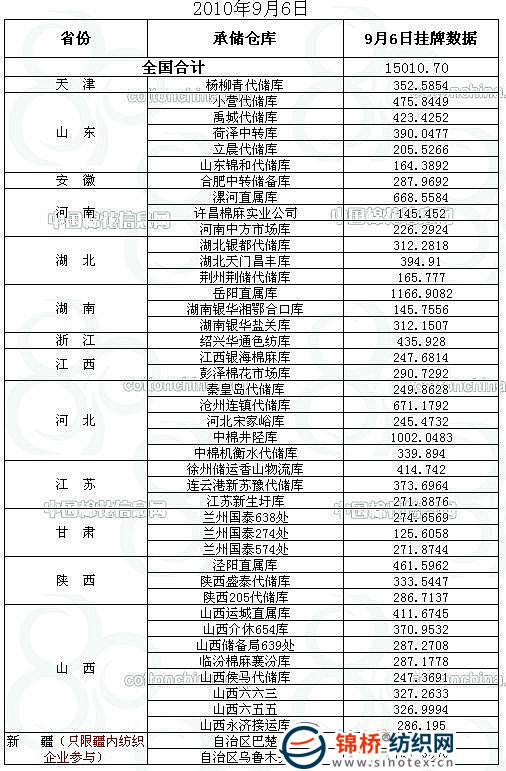 錦橋紡織網(wǎng)—資訊頻道> 棉花信息> 棉花動(dòng)態(tài)>正文 9月6日儲(chǔ)備棉投放預(yù)告:計(jì)劃投放15011噸