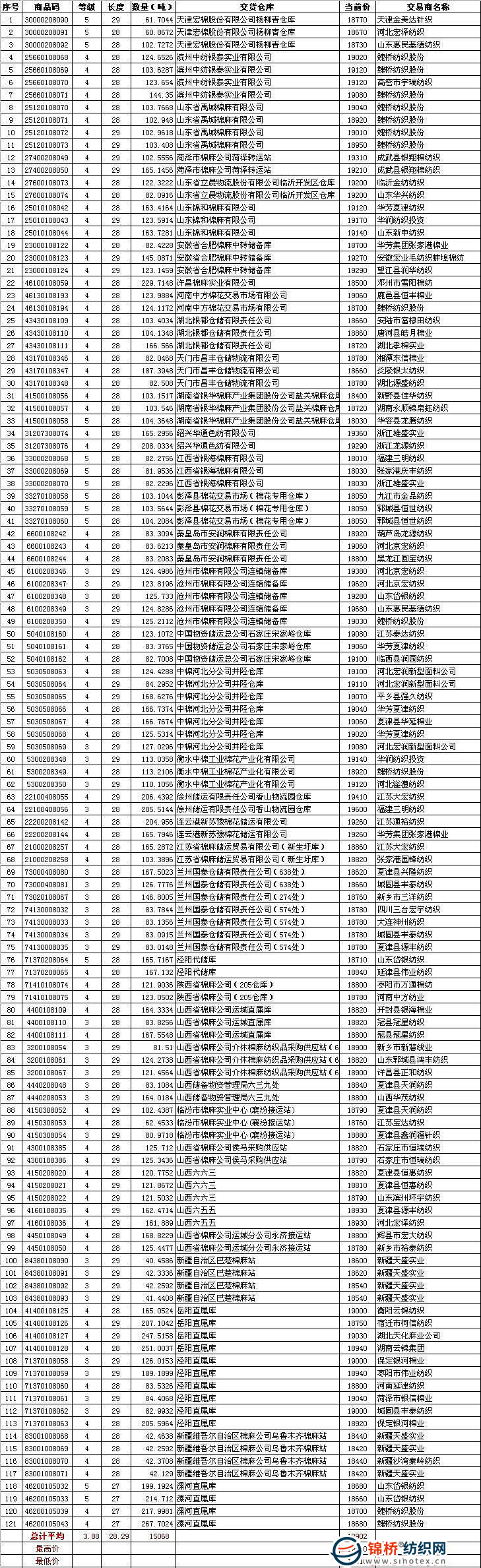 二是成交價繼續(xù)大漲,均價接近1.9萬元。前一交易日均價和折328級分別漲437元和346元,今日分別漲350元和427元。成交均價18902元/噸,接近1.9萬元;折328級達(dá)19349元/噸。 三是當(dāng)日最高成交價19680元/噸,比前一交易日高580元,平均品級329級,共計125噸,承儲在滄州市棉麻有限公司連鎮(zhèn)儲備庫,由山東惠民基德科技紡織有限公司競得;最低成交價18010元/噸,比前一交易日高660元,平均品級528級,共計82噸,承儲在江西省銀海棉麻有限公司,由福建省三明紡織有限公司競得。 |