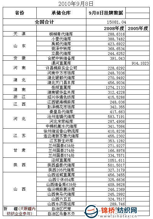 錦橋紡織網(wǎng)—資訊頻道> 棉花信息> 棉花動(dòng)態(tài)>正文 9月8日儲(chǔ)備棉投放預(yù)告:計(jì)劃投放15081噸