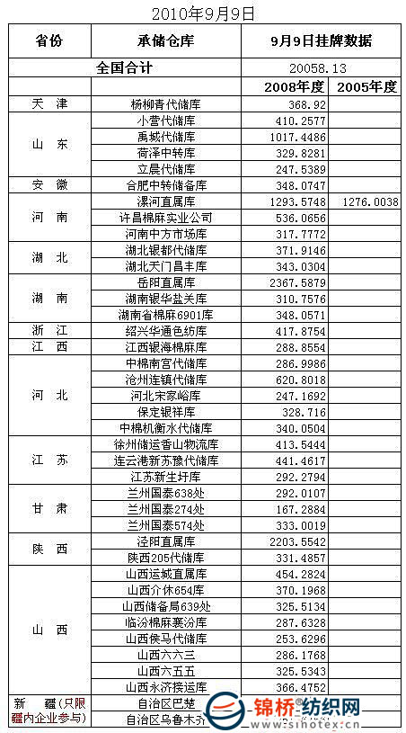 9月9日計劃投放儲備棉20058.13噸,以下為投放庫點具體數據情況: