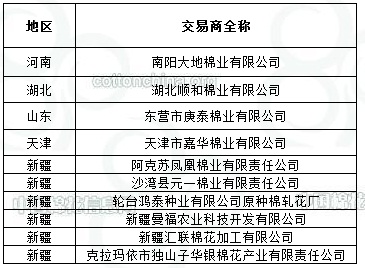2011年度臨時(shí)收儲(chǔ)第二十五批已審核交易商來自全國5個(gè)主產(chǎn)區(qū),共計(jì)10家。