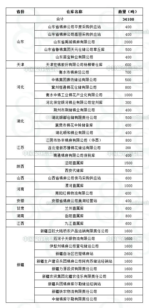 錦橋紡織網(wǎng)—資訊頻道> 棉花信息> 棉花動(dòng)態(tài)>正文 10月24日收儲(chǔ)庫點(diǎn)及數(shù)量