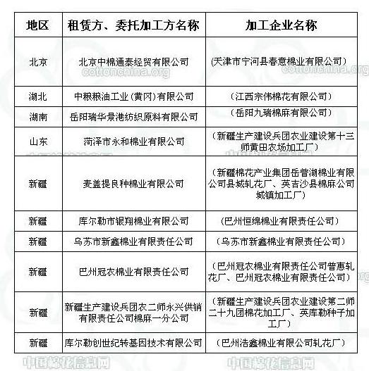 錦橋紡織網(wǎng)—資訊頻道> 棉花信息> 棉花動(dòng)態(tài)>正文 2011年度臨時(shí)收儲(chǔ)已審核租賃、委托加工交易商名單(第二十批)