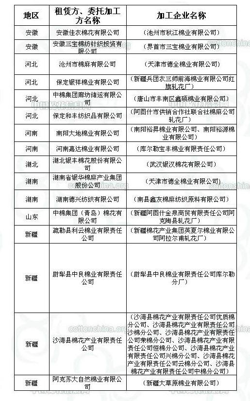 錦橋紡織網(wǎng)—資訊頻道> 棉花信息> 棉花動(dòng)態(tài)>正文 2011年度臨時(shí)收儲(chǔ)已審核租賃、委托加工交易商名單(第二十一批)