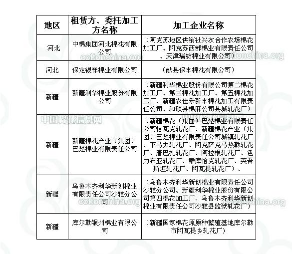 2011年度臨時收儲第二十二批已審核租賃、委托加工交易商來自全國2個主產(chǎn)區(qū)。詳細名單如下: