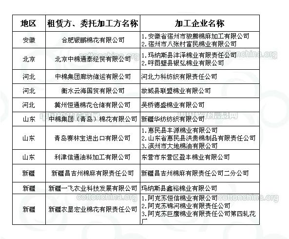 2011年度臨時收儲第二十八批已審核租賃、委托加工交易商來自全國5個主產區(qū)。詳細名單如下: