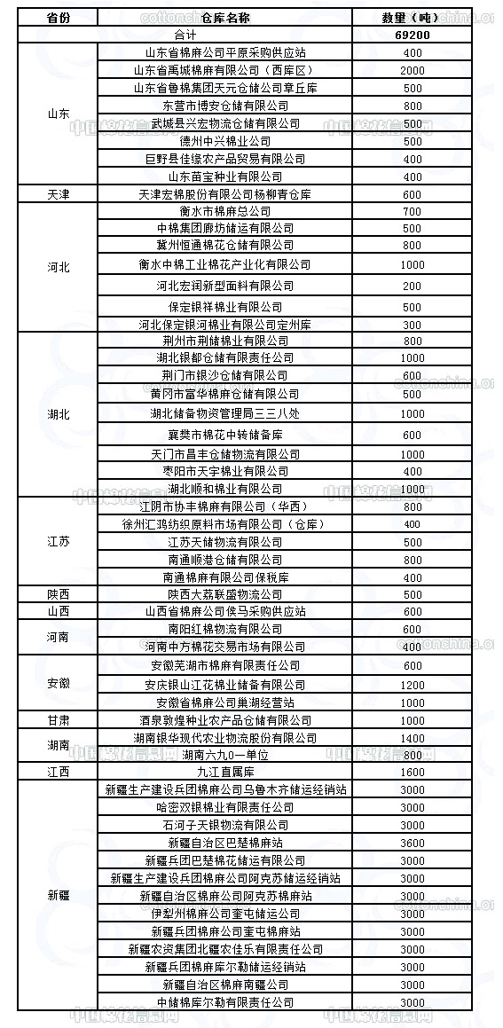 錦橋紡織網(wǎng)—資訊頻道> 棉花信息> 棉花動(dòng)態(tài)>正文 11月11日收儲(chǔ)庫點(diǎn)及數(shù)量