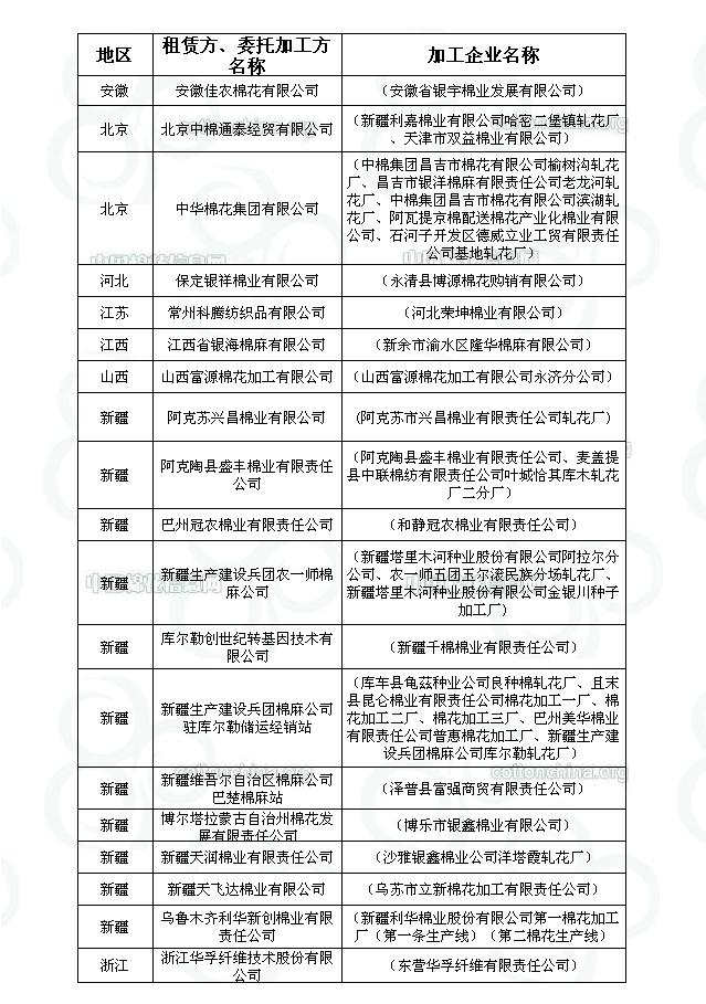 2011年度臨時收儲第二十三批已審核租賃、委托加工交易商來自全國8個主產(chǎn)區(qū)。詳細名單如下: