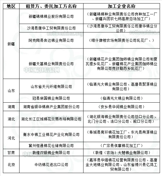 錦橋紡織網(wǎng)—資訊頻道> 棉花信息> 棉花動(dòng)態(tài)>正文 2011年度臨時(shí)收儲已審核租賃、委托加工交易商名單(第三十九批)