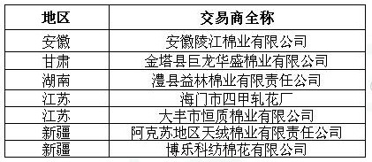 2011年度臨時收儲第五十六批已審核交易商來自全國5個主產(chǎn)區(qū),共計7家。詳細(xì)名單如下: