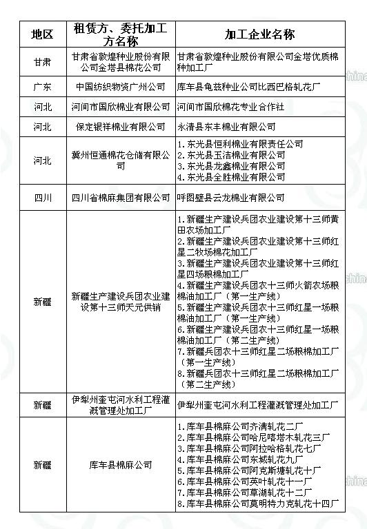 錦橋紡織網(wǎng)—資訊頻道> 棉花信息> 棉花動(dòng)態(tài)>正文 2011年度臨時(shí)收儲(chǔ)已審核租賃、委托加工交易商名單(第二十七批)